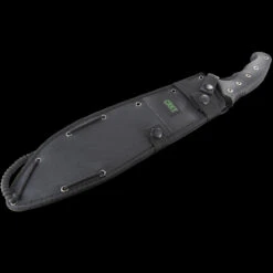The Condor Mountain Pass Surveyor Knife features a stainless steel blade with a two-tone Condor Classic finish. It has a curved Wharcliff shape with a false edge running half the length of the blade. Despite the lack of ultra sharp edge it does, however, have enough “bite” to debark branches or get a spark out of a fire rod. The handle is made up of two slabs of tan canvas micarta with red liners. This extremely practical tool is supplied with a leather sheath.