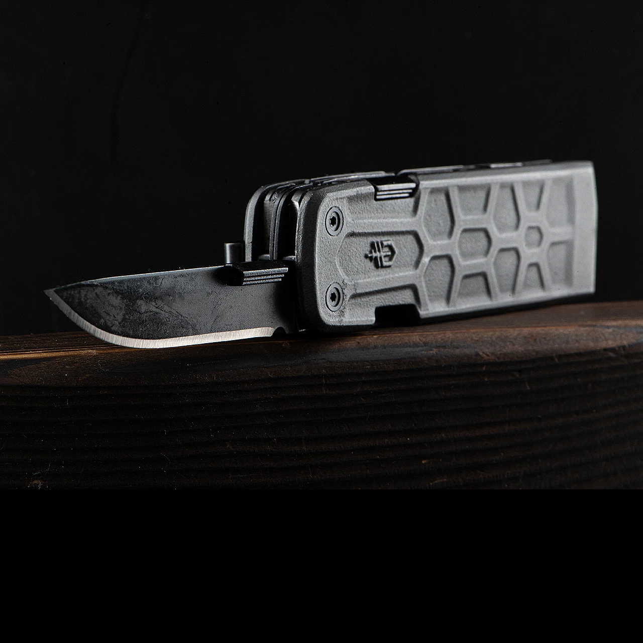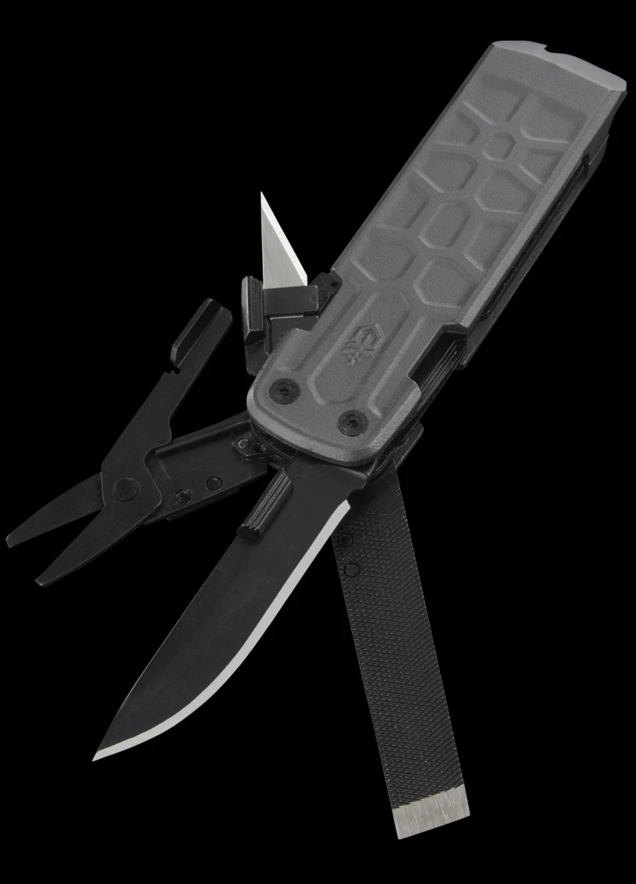 Whatever gets thrown at you, now you are a pocket away from solving it with a double-sided bit driver, replaceable #11 blade, awl, fine edge blade, and a file.Â