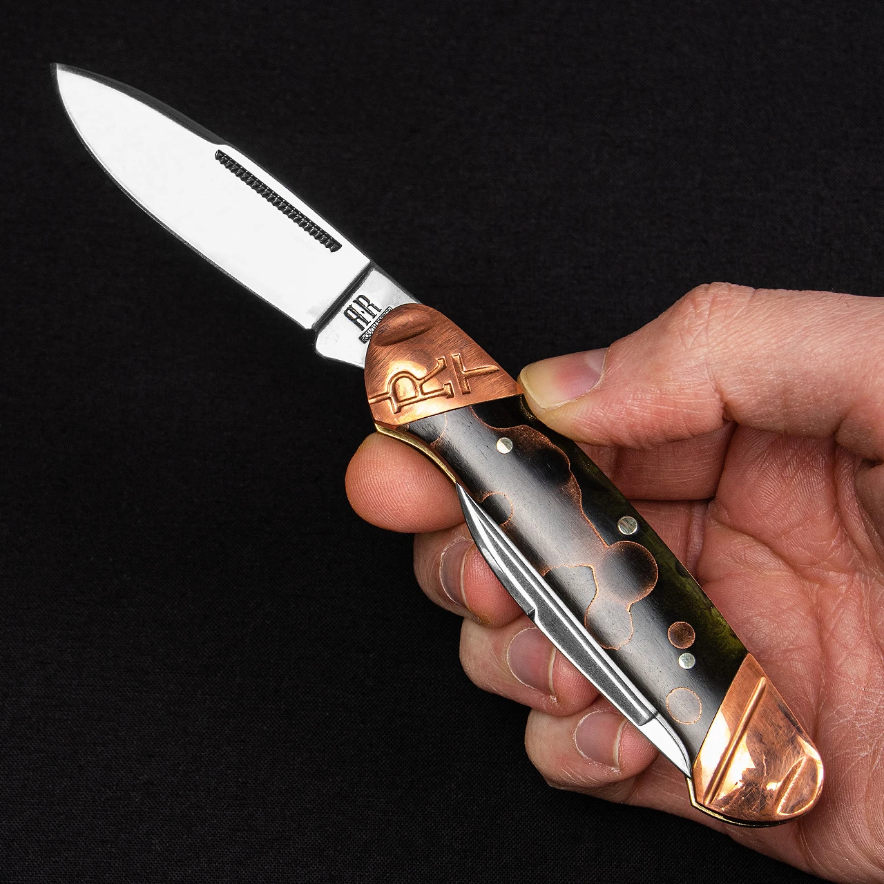 The Canoe is one of the most popular knife forms in history. The Rough Rider Canoe Copper Swirl is a modern day spin on this compact and highly practical design.Â