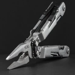 It has twelve basic components: pry bar, bottle opener, small flathead driver, large flathead driver, small Phillips driver, line cutter, blade sharpener, 1/4″ wrench, 5/16″ wrench, 3/8″ wrench, 1/4″ hex bit driver, and lanyard/keychain hole.